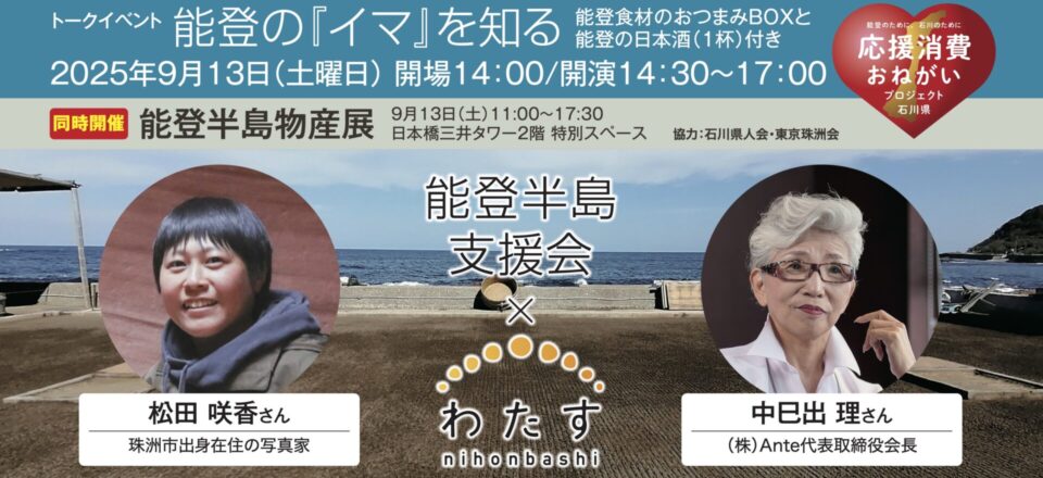 フェイスブックイベントページ: 能登半島支援会×わたす日本橋